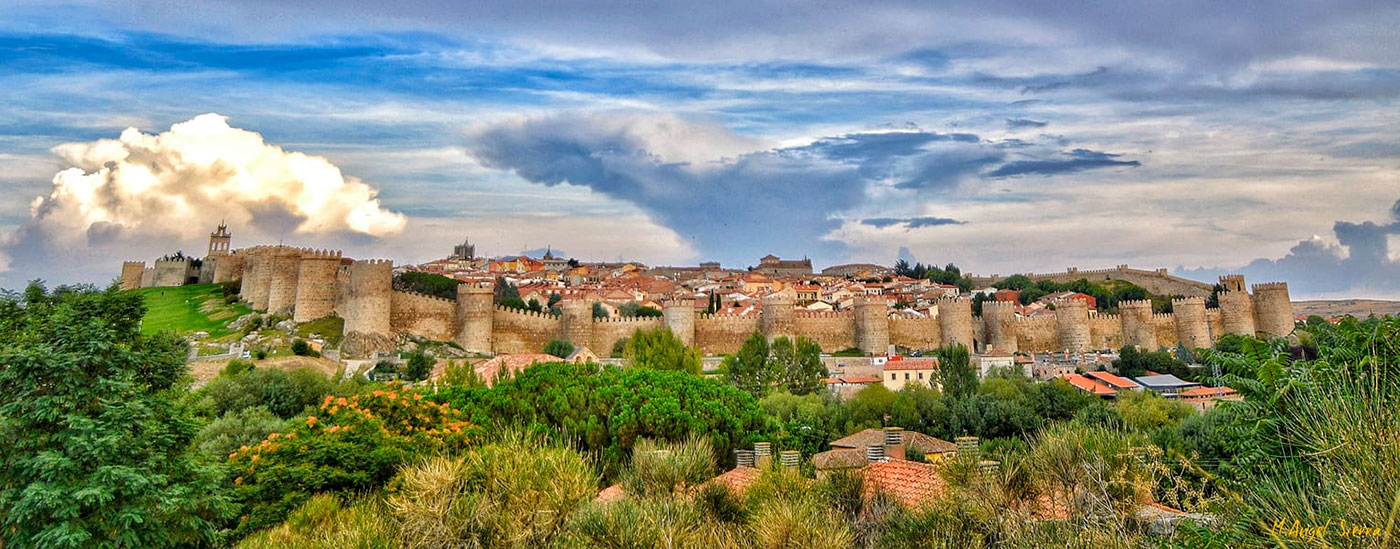 • Miguel Ángel Simarro.  Ávila (Grupo de FB #LaEscuelaDeFotografía). Una fotografía panorámica muy bonita, con un motivo que se adapta perfectamente al formato. El primer plano contextualiza la ciudad amurallada y el cielo resulta interesante, así como un uso del color llamativo, pero sin llegar a cobrar un protagonismo excesivo. Y la simetría de la composición le da también interés a latoma 🙂  ¡Muy buena panorámica Miguel Ángel!  😉