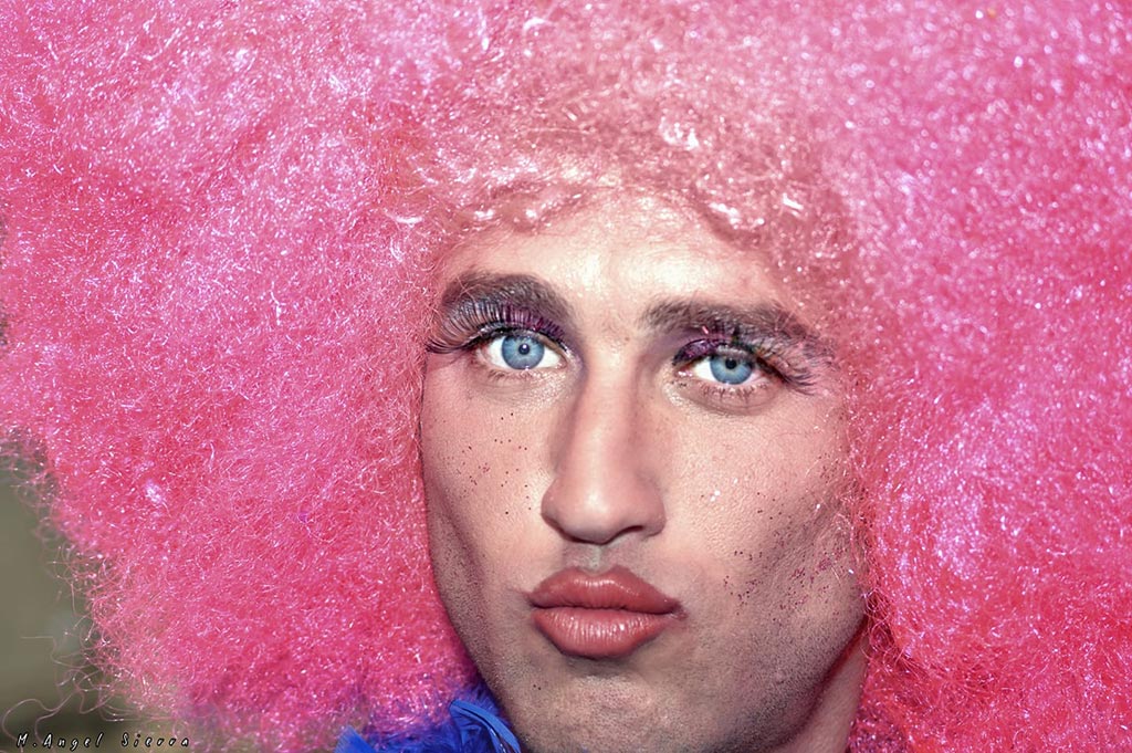 - Miguel Ángel Simarro: Sin título (Grupo de FB #LaEscuelaDeFotografía). ¿Quién dijo que el flash directo no sirve para nada o crea una fotos muy malas? Que se lo digan al reconocido fotógrafo Martin Parr. Un retrato extravagante y muy llamativo, con una potente mirada, en la que creo que el recurso del flash frontal le viene de perlas, ya que confiere más extrañeza, una rareza adicional a la imagen. Muy bien vista la imagen y muy bien usado el recurso del flash. Los colores contrastan bien y siguen esa la línea llamativa del conjunto de la imagen. Aquí tienes Miguel Ángel un filón para una serie de fotografías de los Carnavales, buscando una ejecución similar con flash directo ¡Estupenda imagen Miguel Ángel! ;)