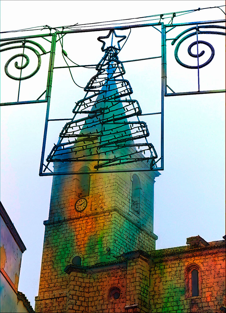 - Miriam Talavera: Sin título (Grupo de FB #LaEscuelaDeFotografía). Otra imagen de la misma torre. Me gusta mucho cómo ha jugado visualmente Miriam con el adorno navideño y la forma triangular de la torre. Esa es una de las magias de la fotografía, las relaciones que puede crear entre los elementos. Una relación irreal, ya que un pasito hacia un lado, hacia delante o atrás, y esa relación se pierde. Pero he aquí la magia del fotógrafo 😉 Por eso es tan importante buscar y aplicar nuestra propia mirada. Miriam ha jugado con los colores creando una imagen más pictórica e irreal, algo con lo que hay que tener cuidado, ya que es fácil que se vaya la mano, pero que no le queda nada mal, además pensando en esta época del año 😉 ¡Muy bien visto y capturado Miriam! 🙂