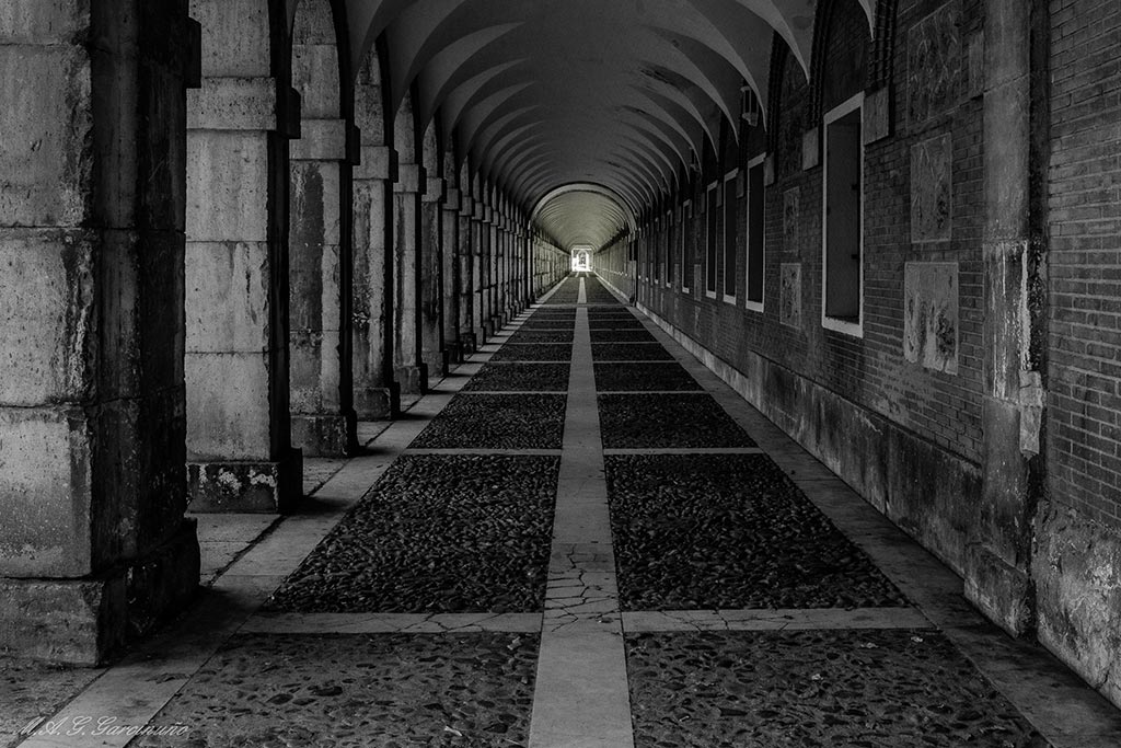 - Miguel Ángel Gómez: El fin de Aranjuez (Página de FB de The imagen). Estupenda fotografía con una gran profundidad. La simetría le da interés y el blanco y negro hace que no nos descentremos por el color. Creo que si al final del pasillo se mostrase una figura oscura recortada le aportaría un plus, un punto dinámico que atraería mucho la atención. Colocar el centro en el tercio horizontal superior para potenciar las líneas inferiores creo que funciona bien ¡Muy buena fotografía Miguel Ángel! 😉