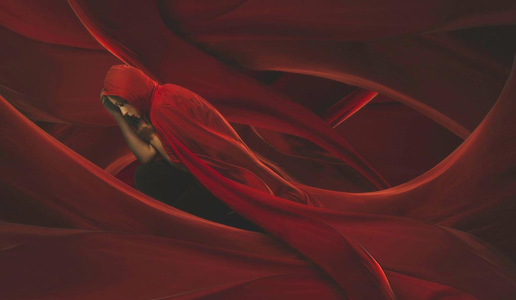 - David Alonso: Soñando en rojo (Página de FB The imagen). Una magnífica imagen, perfectamente creada. La imagen resultante nos remite al cuento de caperucita… y por la pose de la modelo se apoya esa soledad buscada. Una creación muy bonita y con grandes connotaciones, que podría estar pareja a la ganadora, pero creo que transmite algo menos esa sensación de soledad que buscábamos, aún así… ¡Estupenda imagen David!